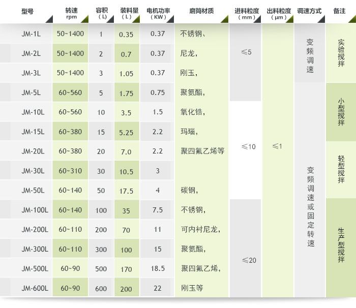 四、實驗室攪拌球磨機參數
