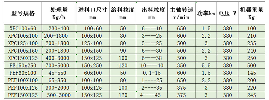 四、實(shí)驗(yàn)室顎式破碎機(jī)參數(shù)