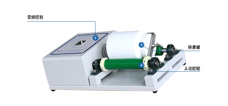 3.通過調整從動膠輥可以使用一定范圍內的不同外徑的球磨罐;
